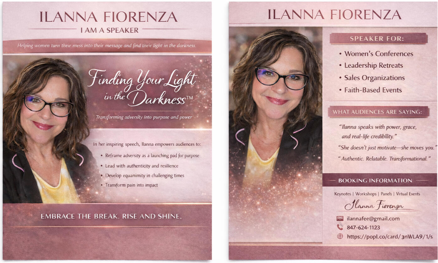 What if I told you the things that broke you… were actually designed to light you up?My name is ilanna Fiorenza — Speaker, story collector Coach, beauty advisor w/ 20 years of experience — I help women turn their darkest moments into their brightest breakthroughs. Are you ready to shine your light inside -out?I will take you on a journey through faith, resilience, and radical authenticity — to show you that your mess isn’t the end of your story… it’s the message someone else is waiting for.Because I believe you don’t have to fake it till you make it — you be it till you become it, I would enjoy connecting w/ you -let's chat more!